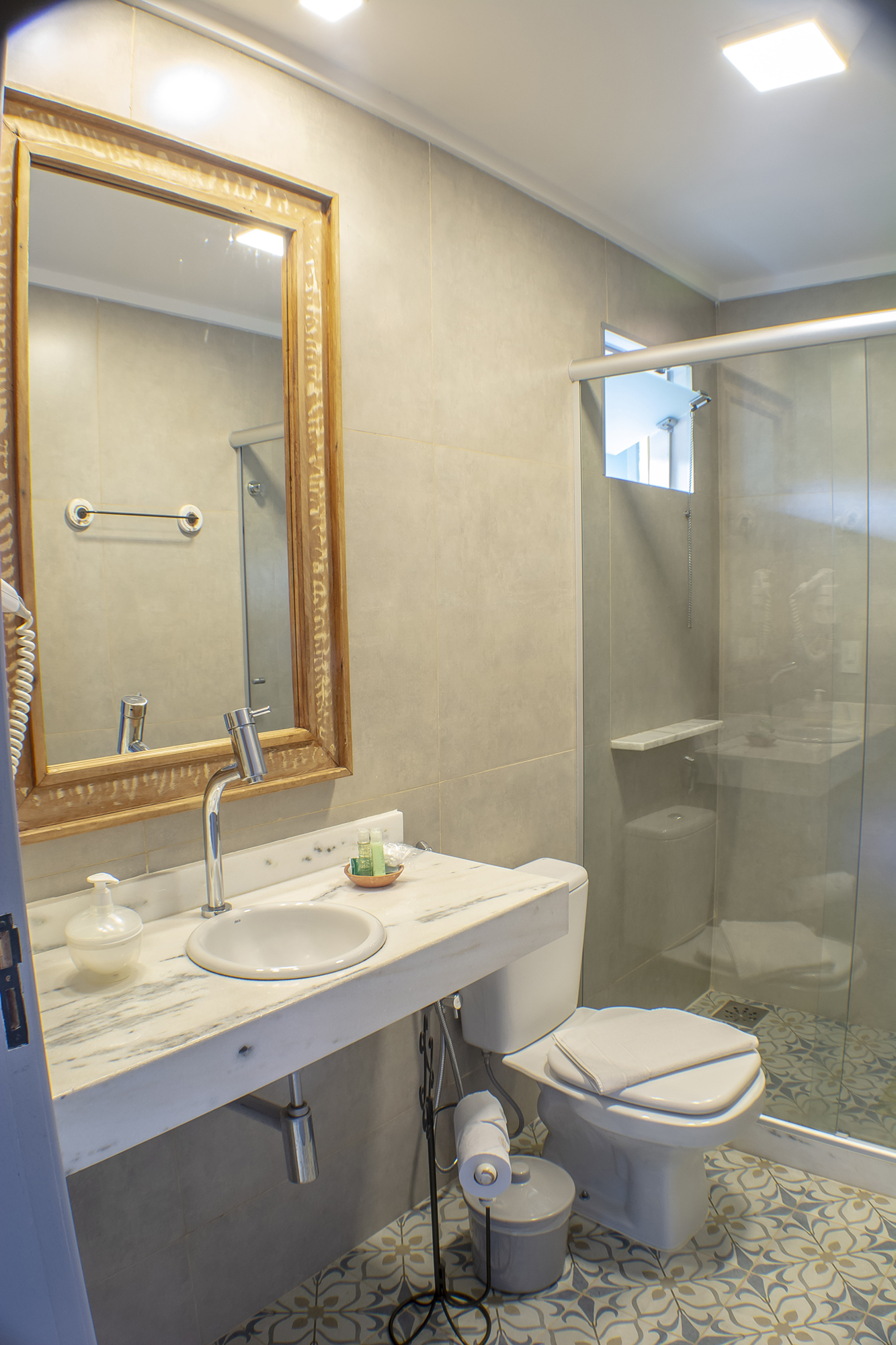 Apartamento amplo com decoração diferenciada, banheiro privativo, ar-condicionado, frigobar, TV LCD 32” com canais SKY e telefone, sacadas com vista para o jardim.